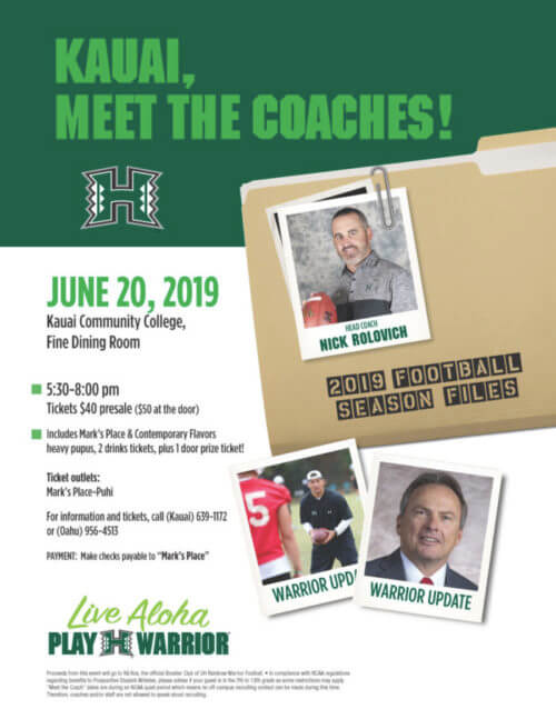 Kaua'i Football Fans! Come out and meet the Warrior Football coaching staff on June 20th in the KCC...