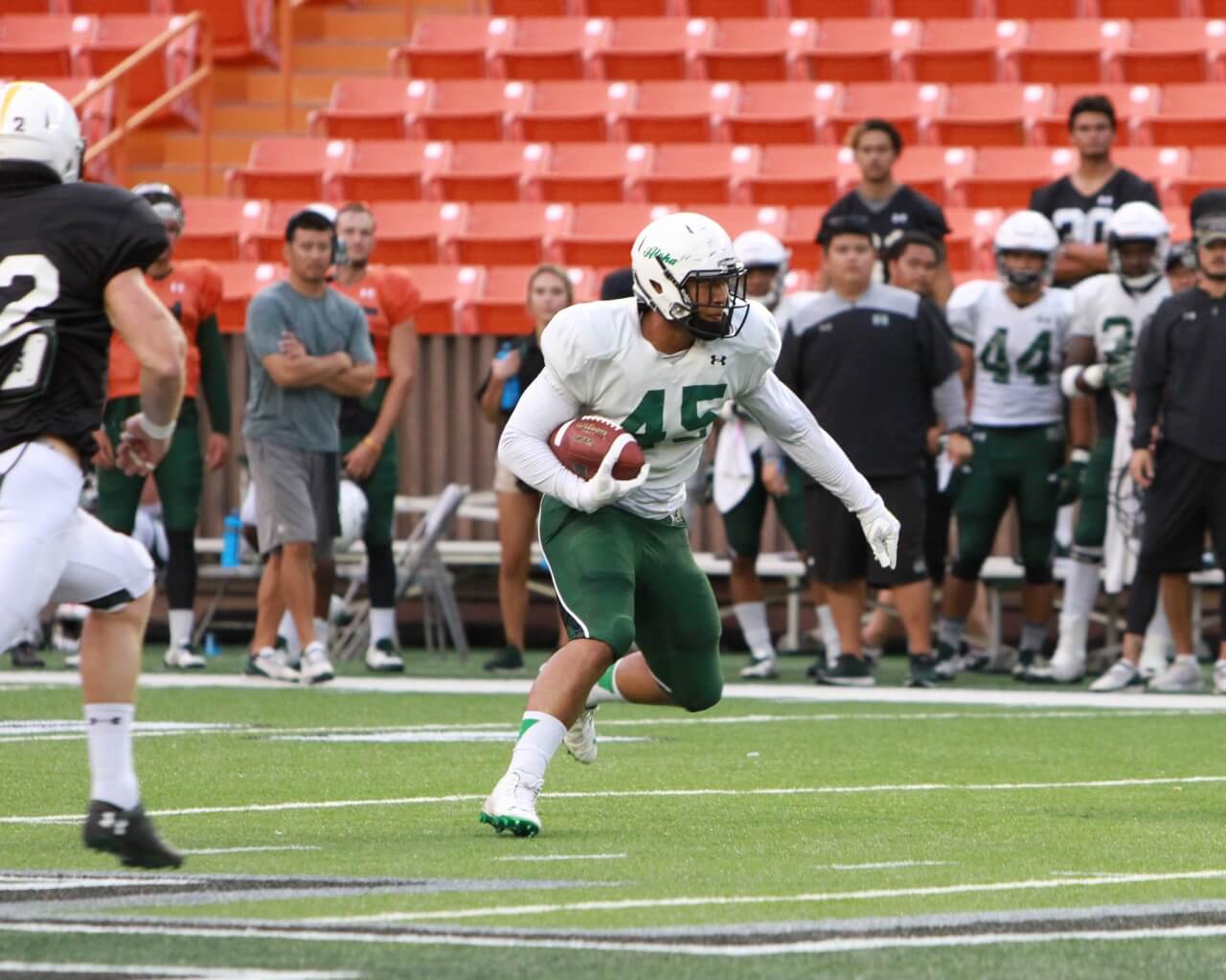 The team held a closed practice at Aloha Stadium on August 11th. Among the invited guests were alumni players and their families.