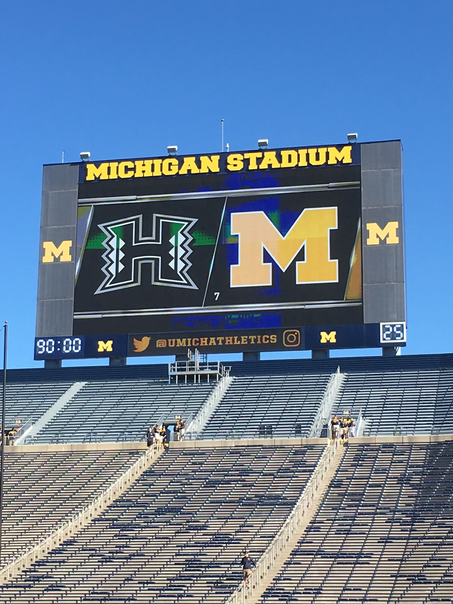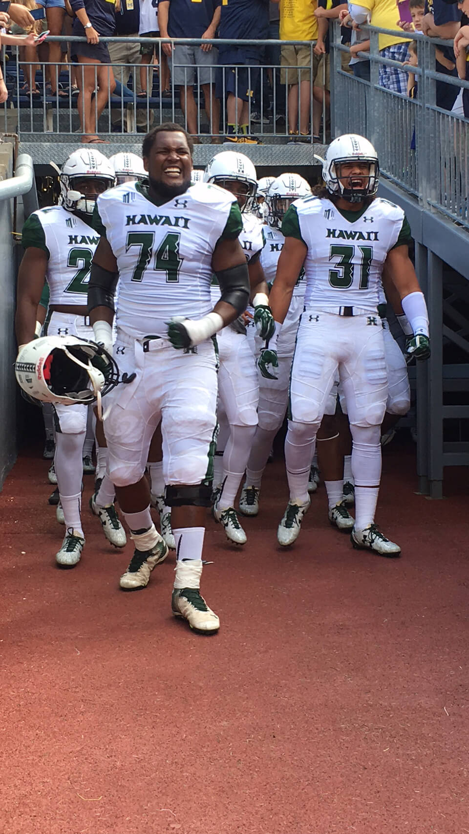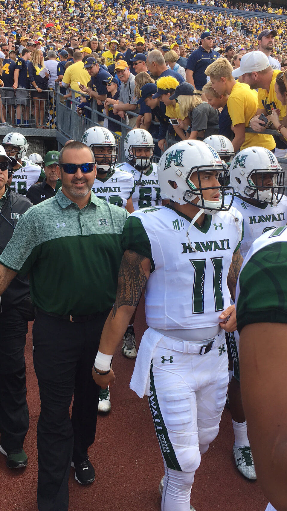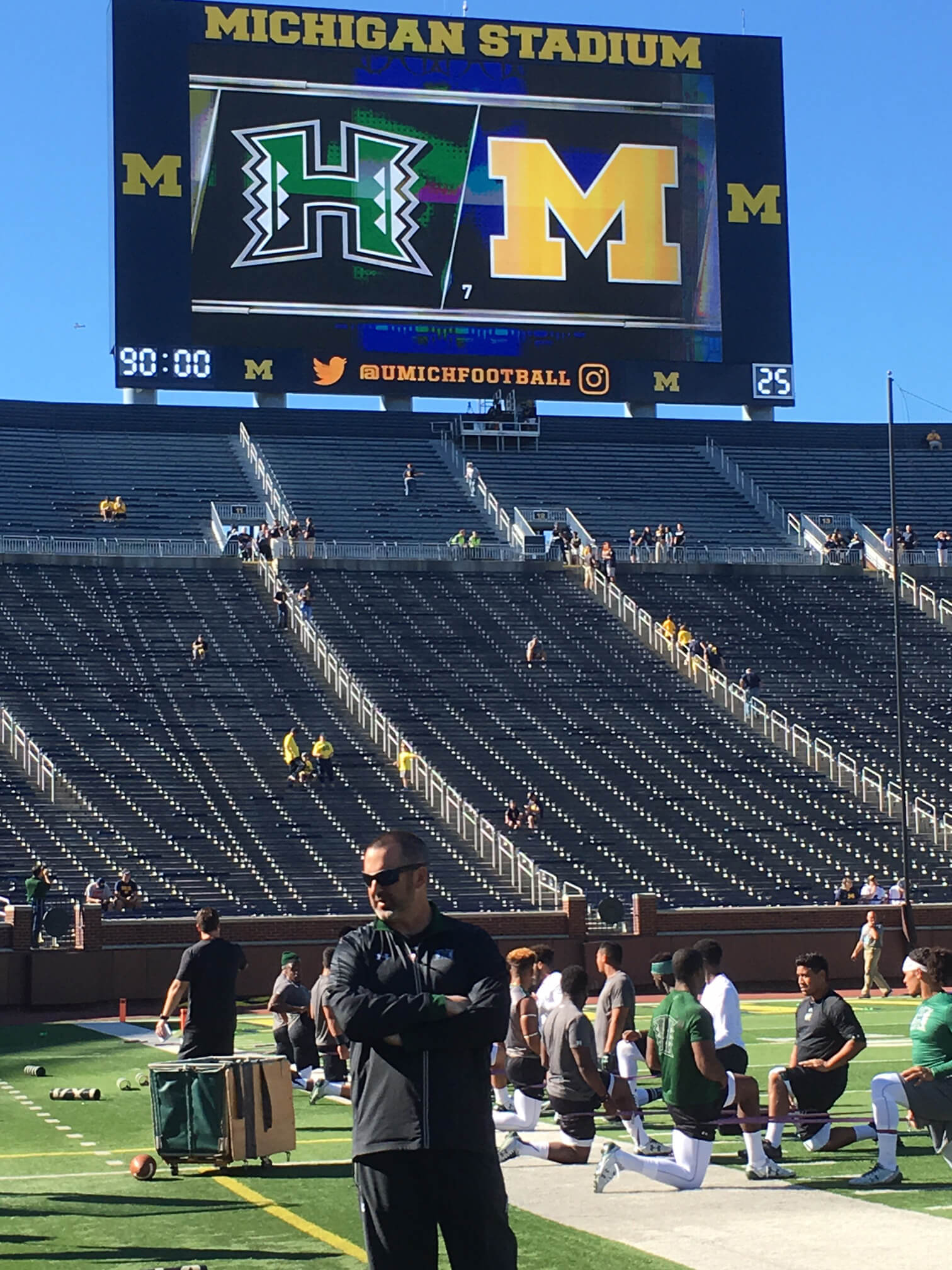 The Rainbow Warriors appreciated the University of Michigan’s traditions and amazing stadium, “The Big House.” The charter flight and great service provided by Hawaiian Airlines made the mainland trek easier, despite the final score: Michigan 63 – Hawai‘i 3. The Warriors are returning home for a Sept. 11 game against University of Tennessee Martin. Special thanks go to Eric Fujimoto (Nā Koa president) for these photos. For game photos, please go to the University of Hawai‘i Athletics website, https://hawaiiathletics.com/galleries/?gallery=694.