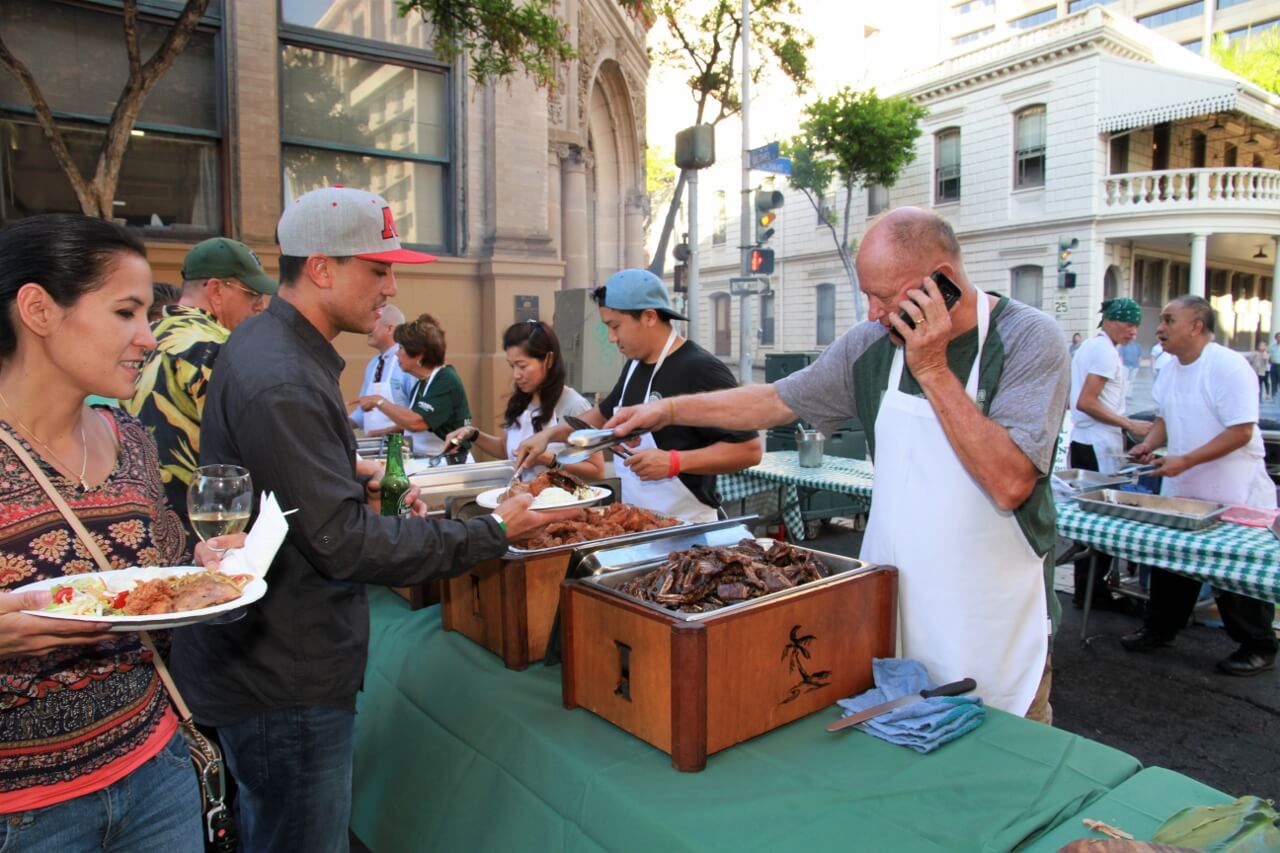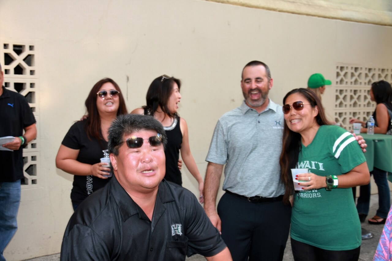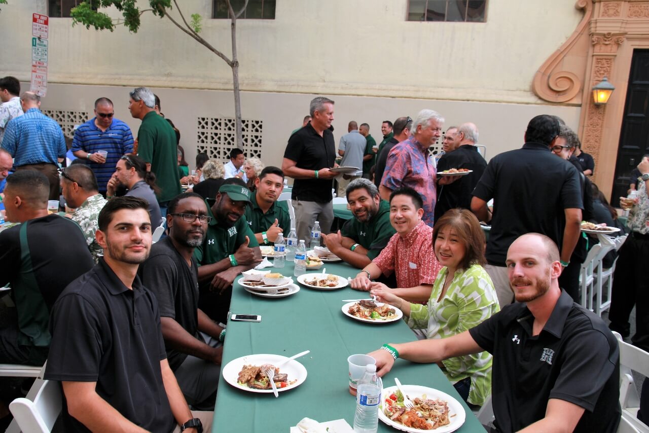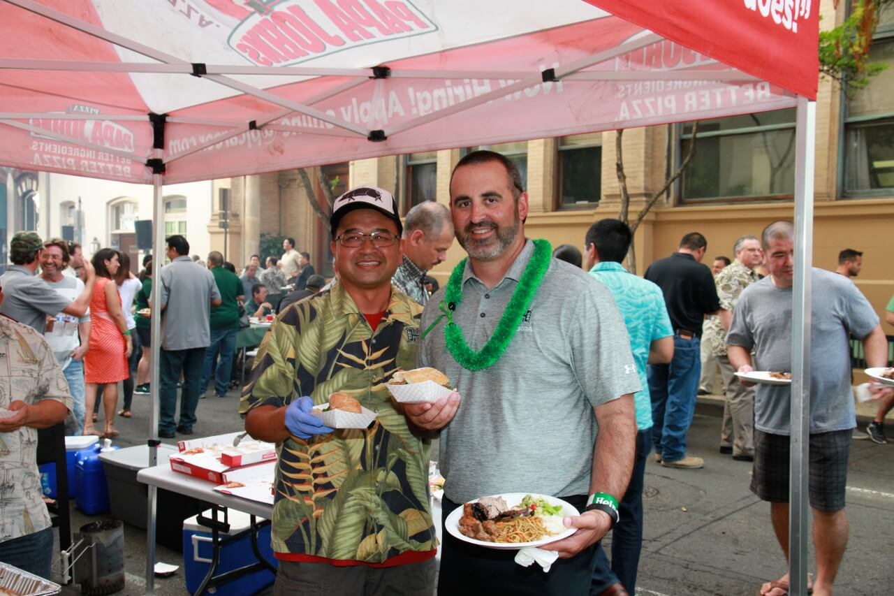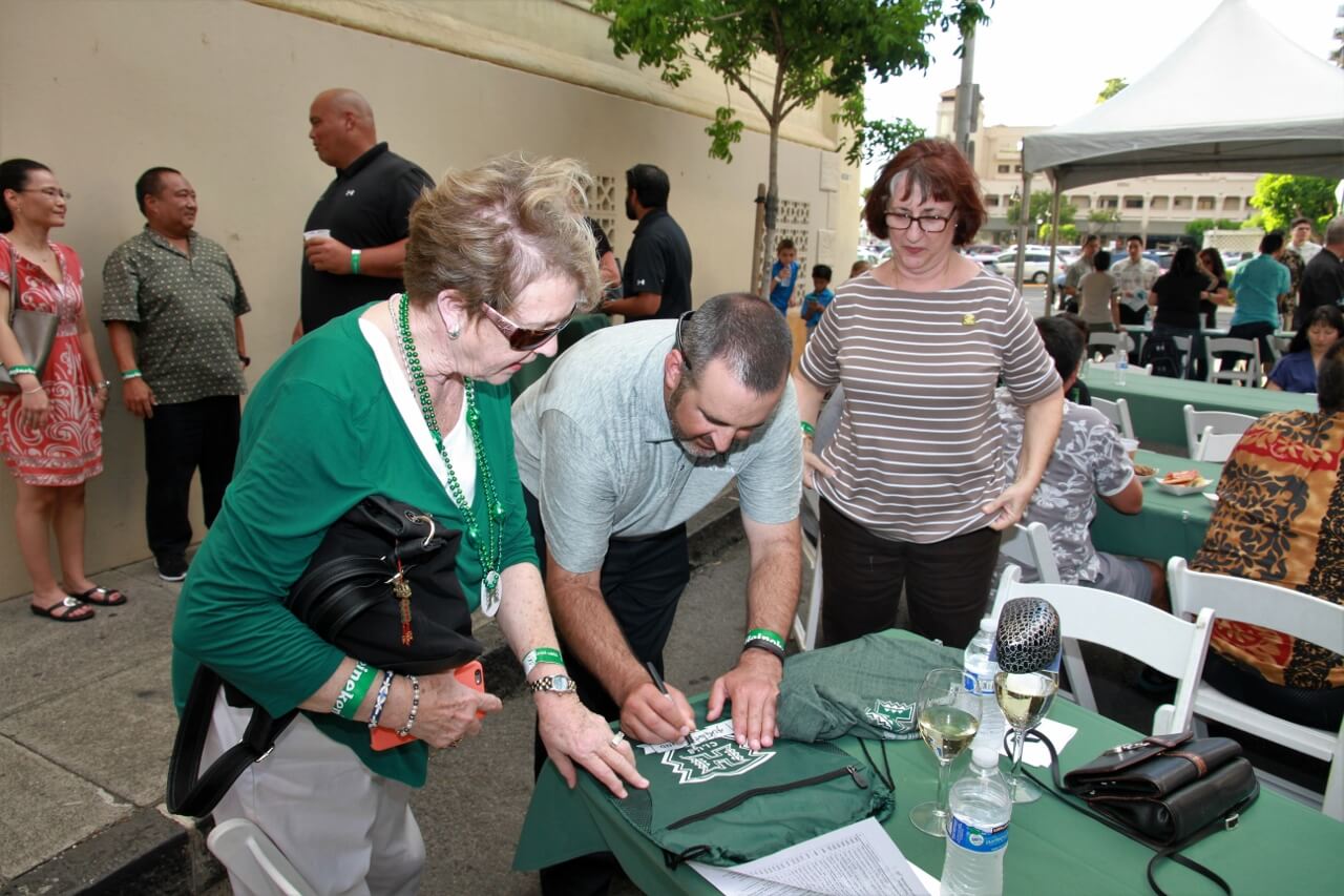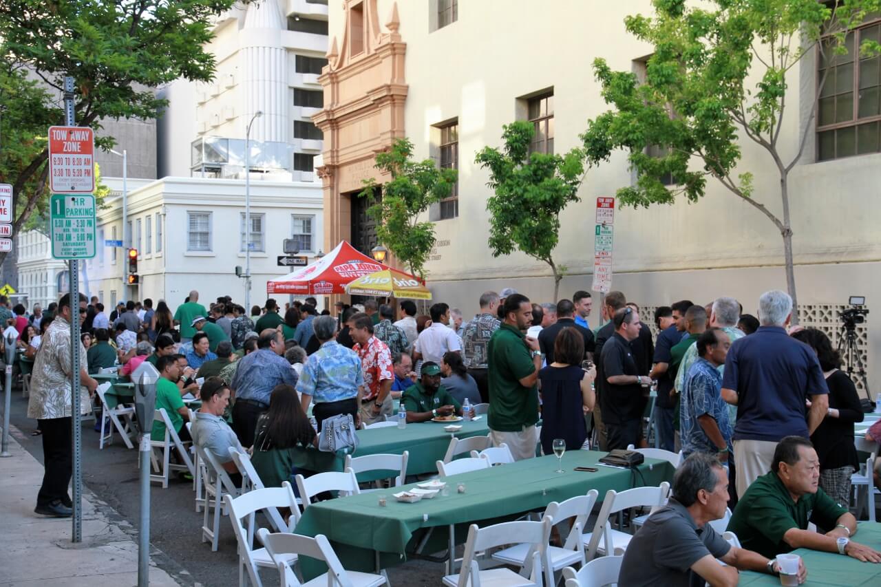 Mahalo to Don and Marion Murphy for hosting the 20th annual Murphy’s Pigskin Pigout benefitting Na Koa and the Hawaii Bowl Foundation. The event marks the traditional start of the UH Football season and saw over 300 people fill Merchant Street outside Murphy’s Bar and Grill for a food and fun-filled street party. Murphy’s famous roasted pig along with pizza from Papa John’s and a special porchetta sandwich from Quan Nguyen were on the menu. The live auction featured Neighbor Island and Mainland trips, sports memorabilia, a hand-crafted ukulele and surfboard, and much more. Over $75,000 was raised to support Na Koa and local charities through the Hawai‘i Bowl Foundation. Thanks to everyone who supported the event!