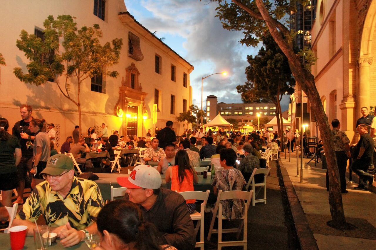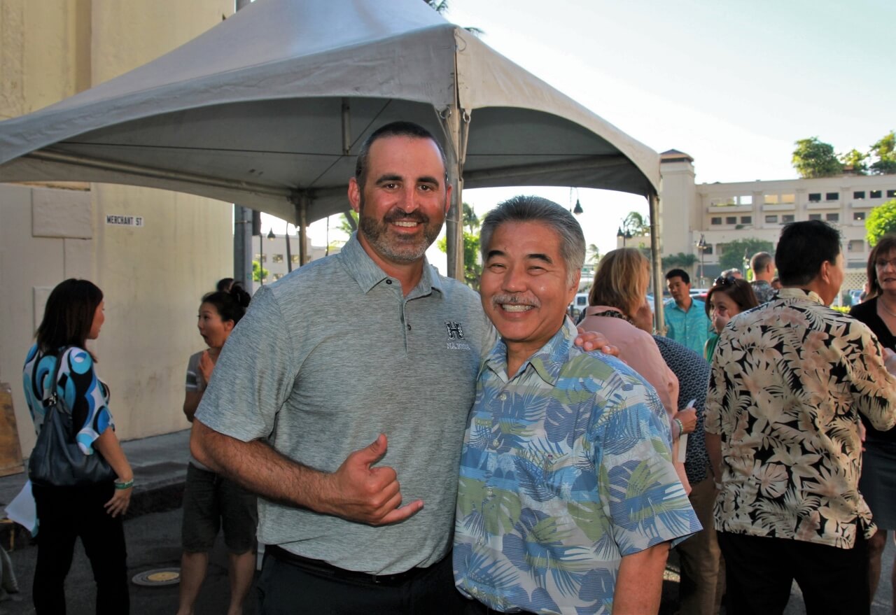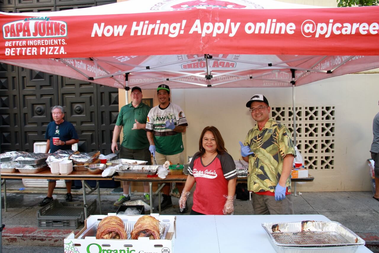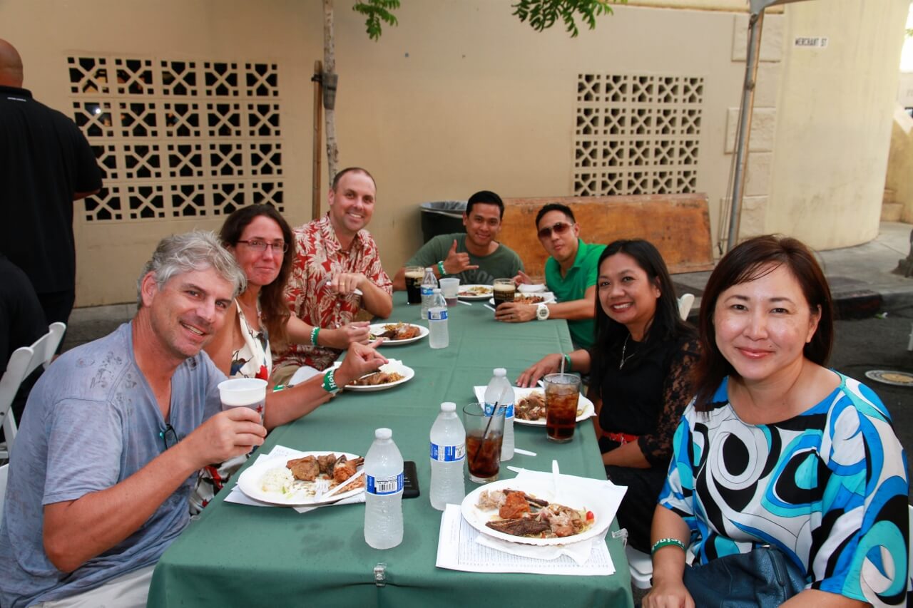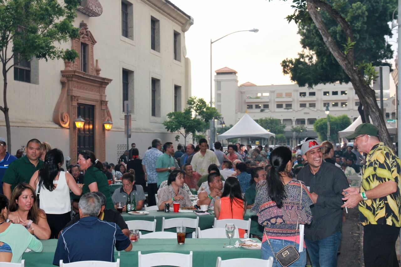 Mahalo to Don and Marion Murphy for hosting the 20th annual Murphy’s Pigskin Pigout benefitting Na Koa and the Hawaii Bowl Foundation. The event marks the traditional start of the UH Football season and saw over 300 people fill Merchant Street outside Murphy’s Bar and Grill for a food and fun-filled street party. Murphy’s famous roasted pig along with pizza from Papa John’s and a special porchetta sandwich from Quan Nguyen were on the menu. The live auction featured Neighbor Island and Mainland trips, sports memorabilia, a hand-crafted ukulele and surfboard, and much more. Over $75,000 was raised to support Na Koa and local charities through the Hawai‘i Bowl Foundation. Thanks to everyone who supported the event!