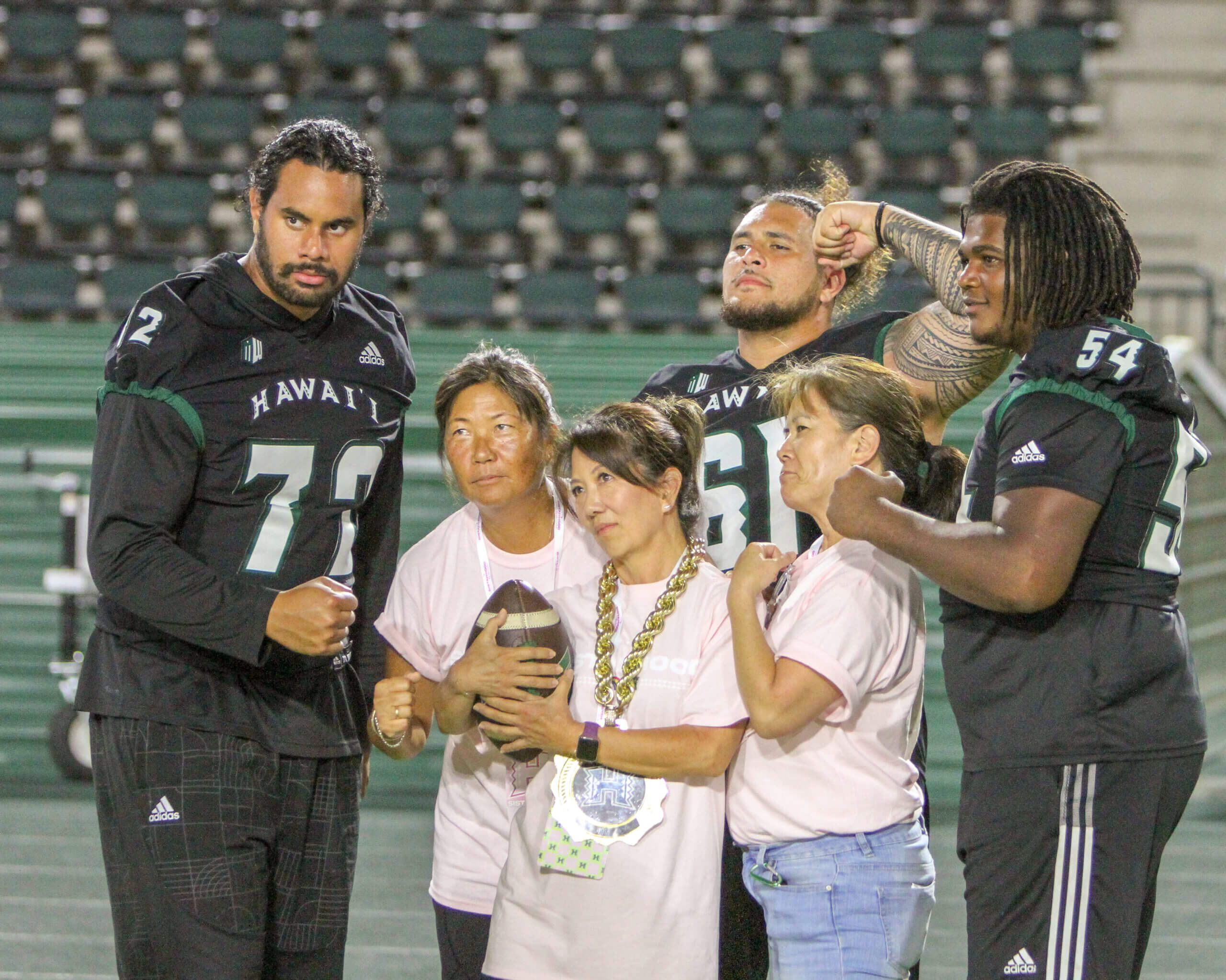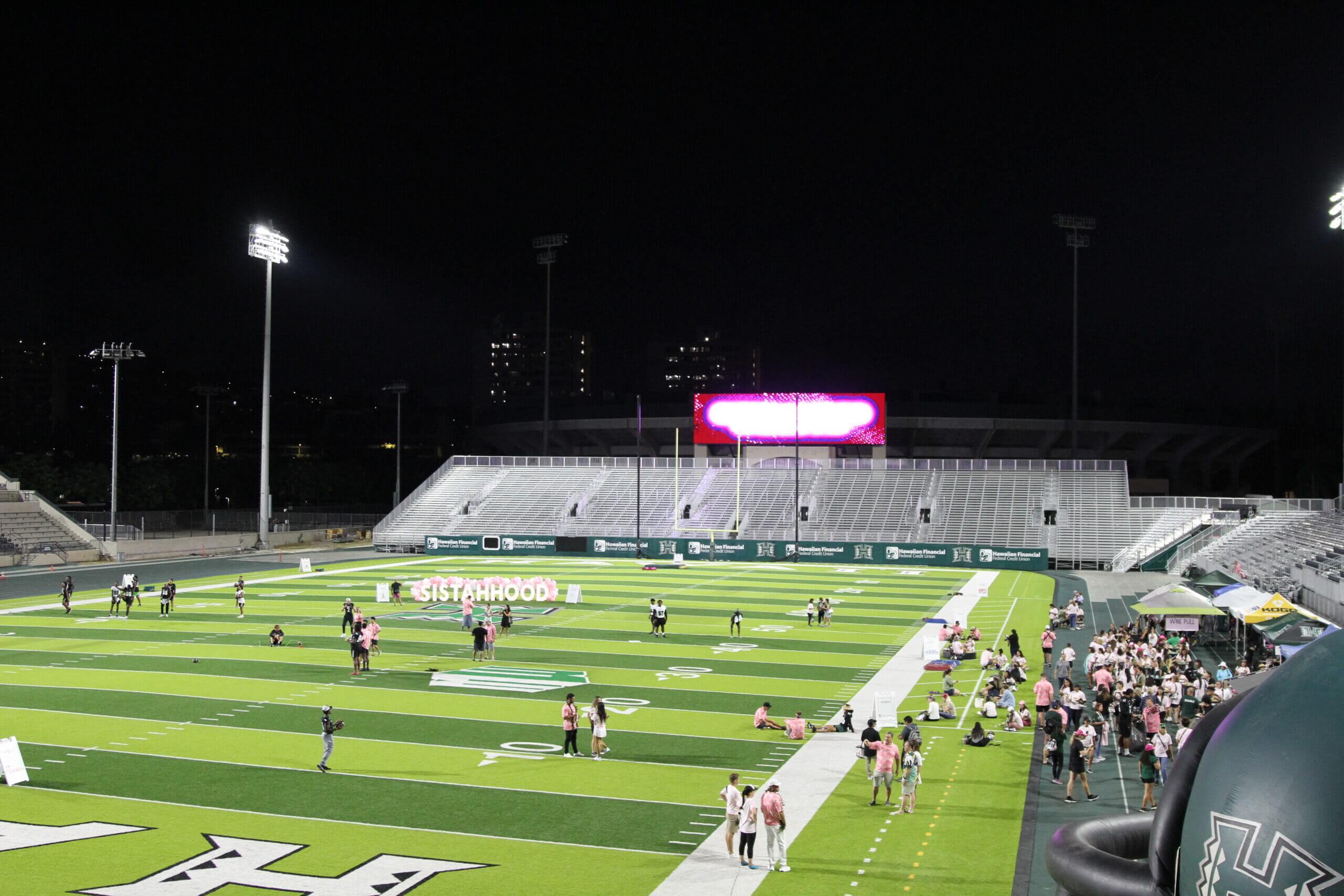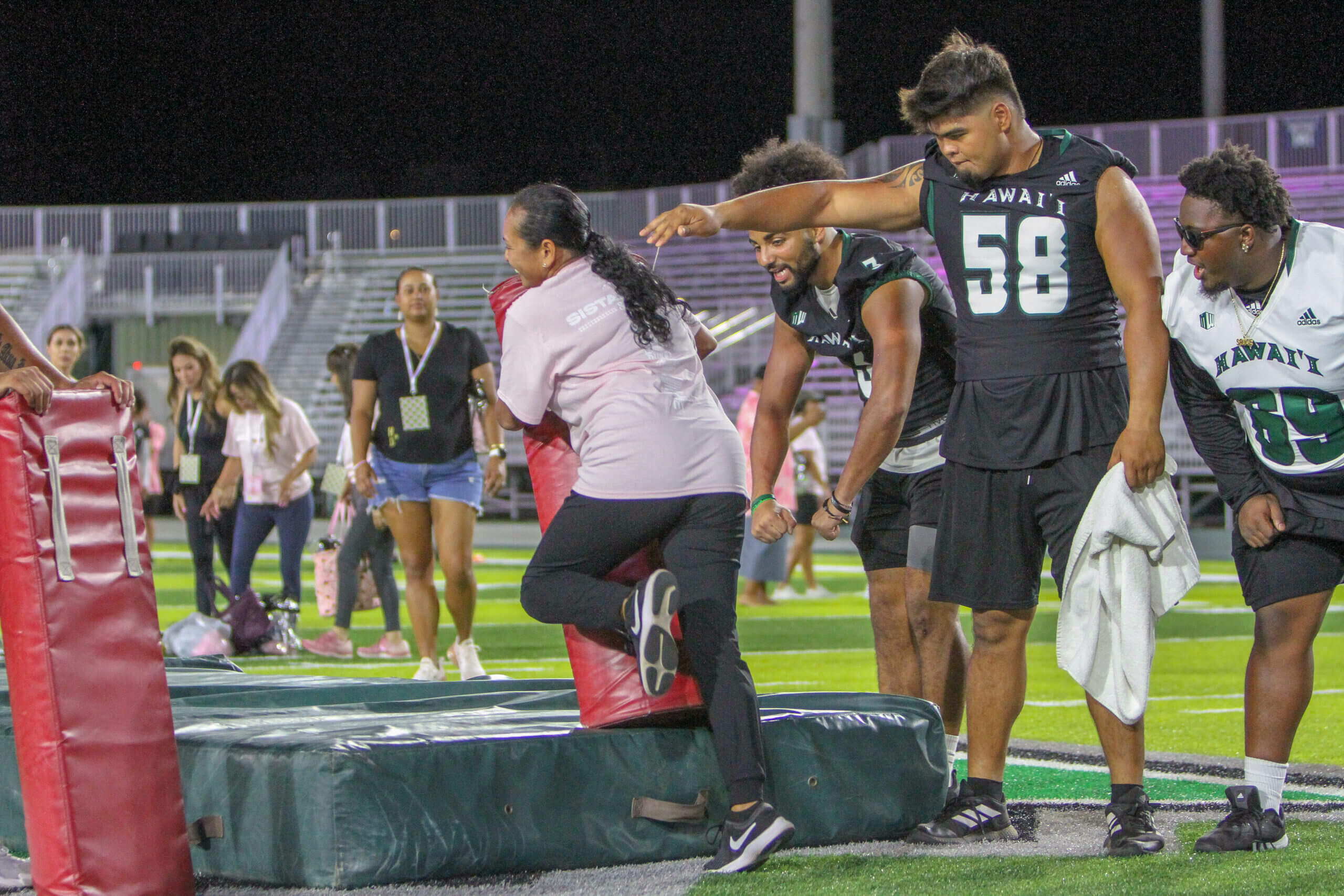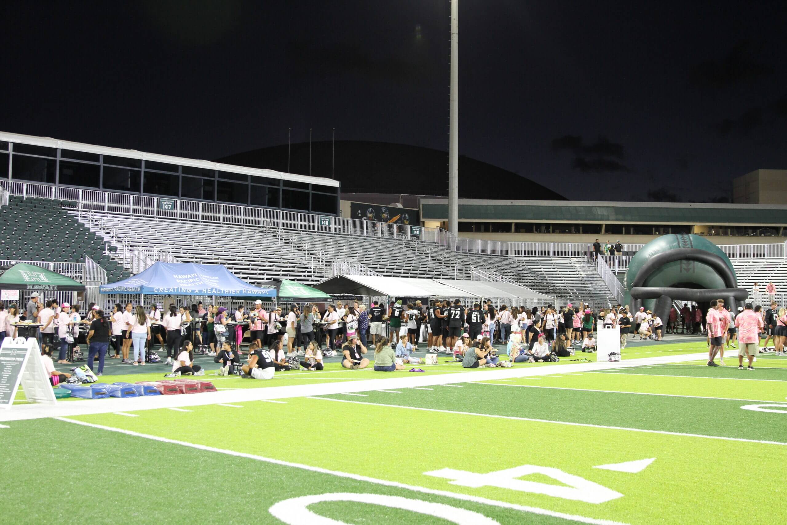 The Sistahhood Social 2 was held on August 19th at the UH athletic department and TC Ching Field. Participants were treated to chalk talks by the coaches, tours of the new weight room and renovated lockerroom, food and beverages and live drills conducted by the coaches and players. There were also a live and online auctions. The event raised nearly $100,000 for the Warrior football program.