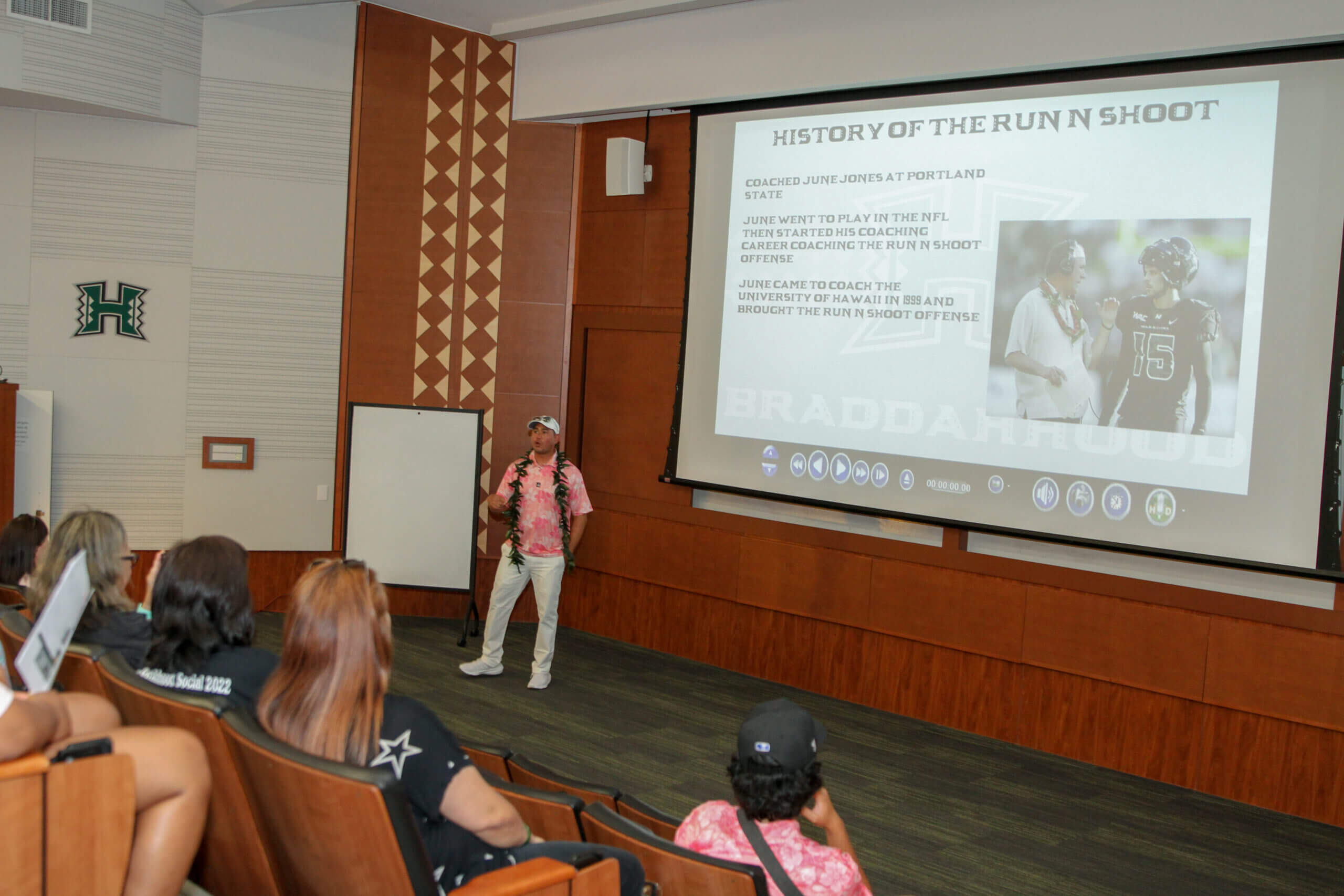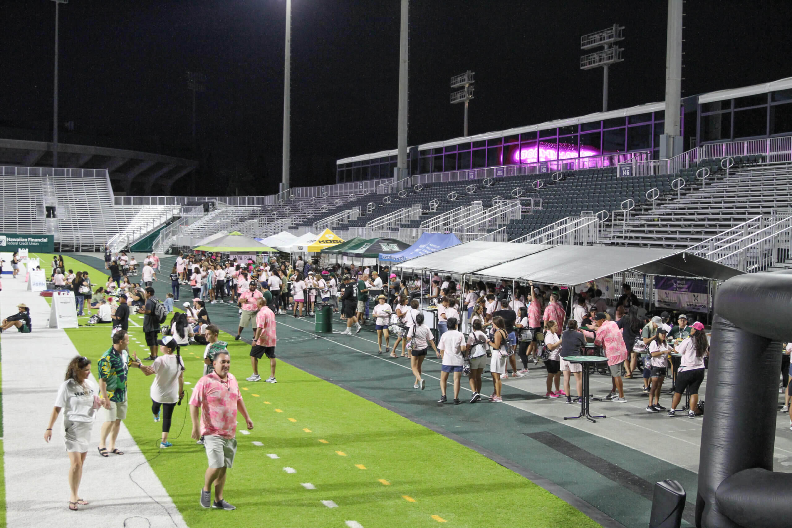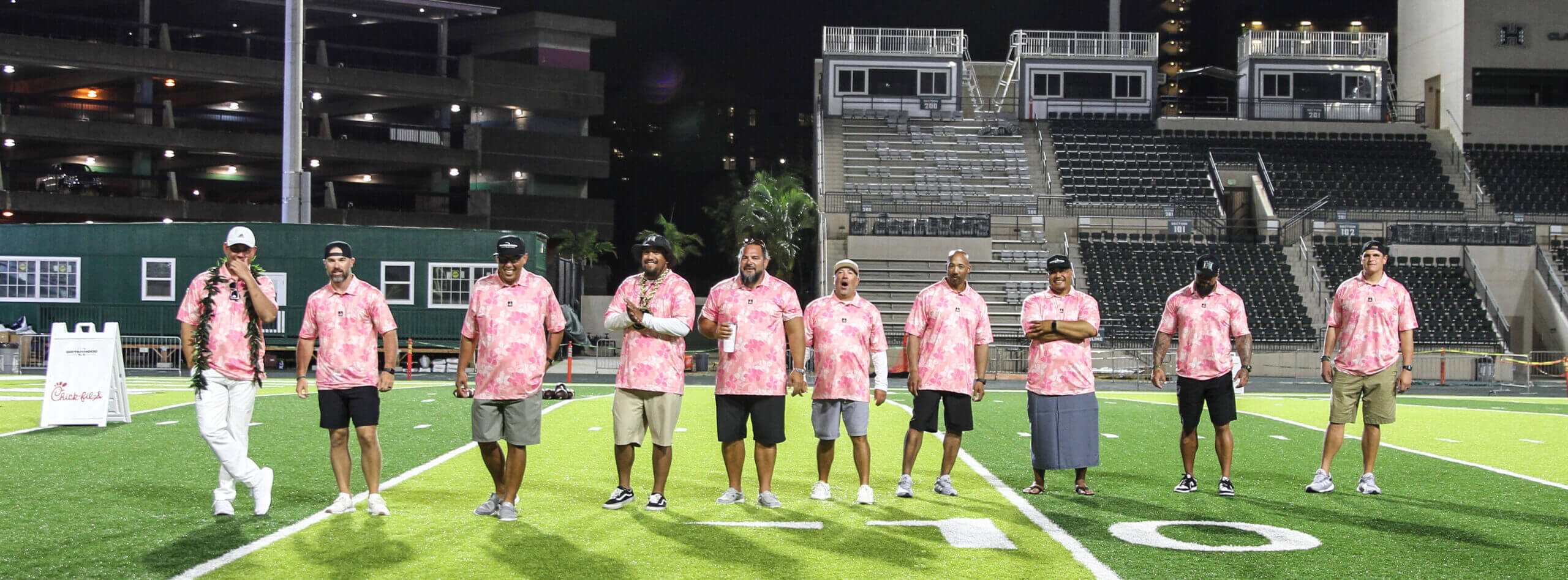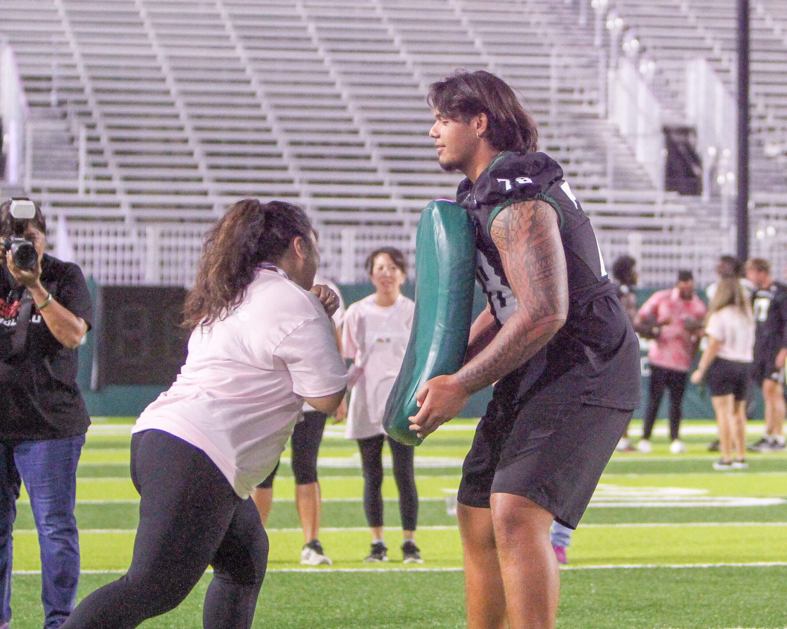 The Sistahhood Social 2 was held on August 19th at the UH athletic department and TC Ching Field. Participants were treated to chalk talks by the coaches, tours of the new weight room and renovated lockerroom, food and beverages and live drills conducted by the coaches and players. There were also a live and online auctions. The event raised nearly $100,000 for the Warrior football program.