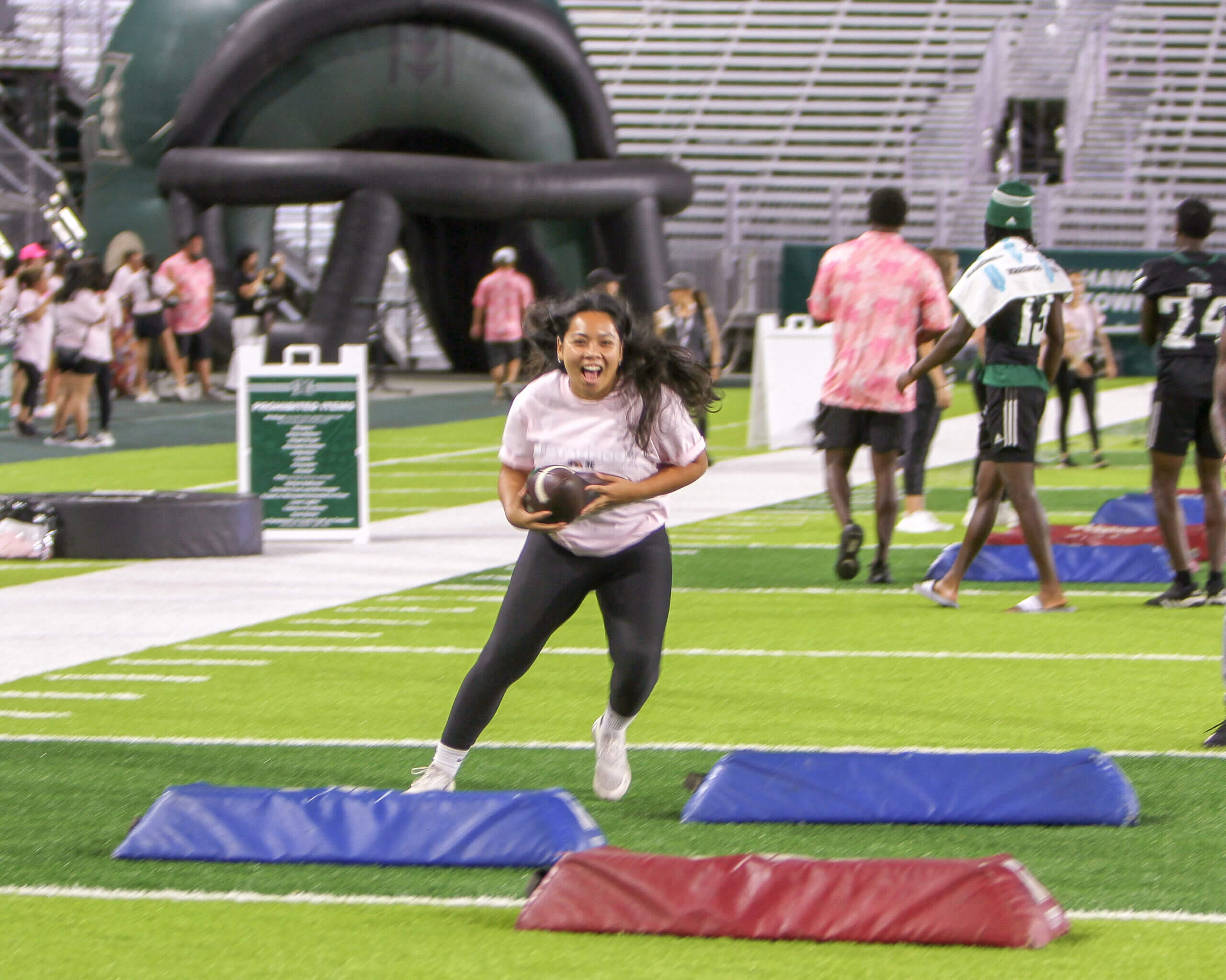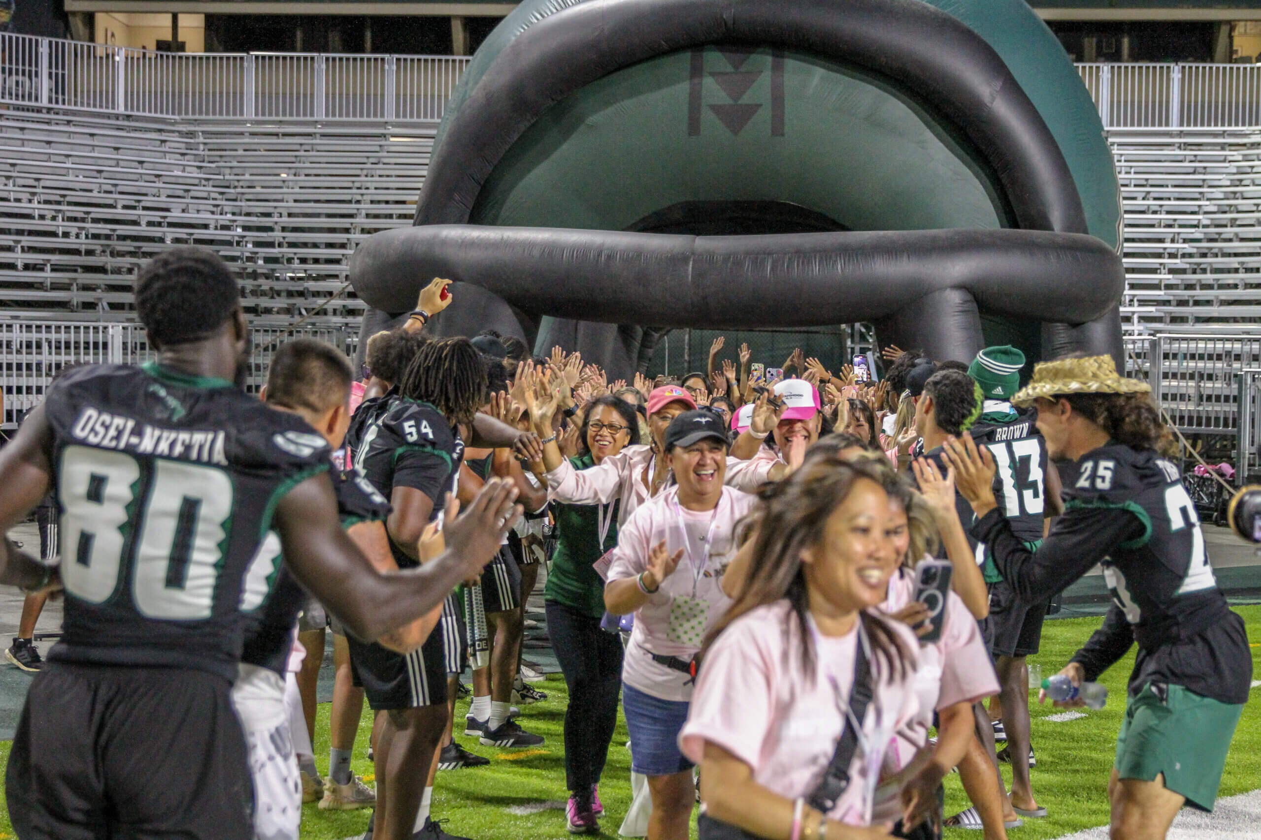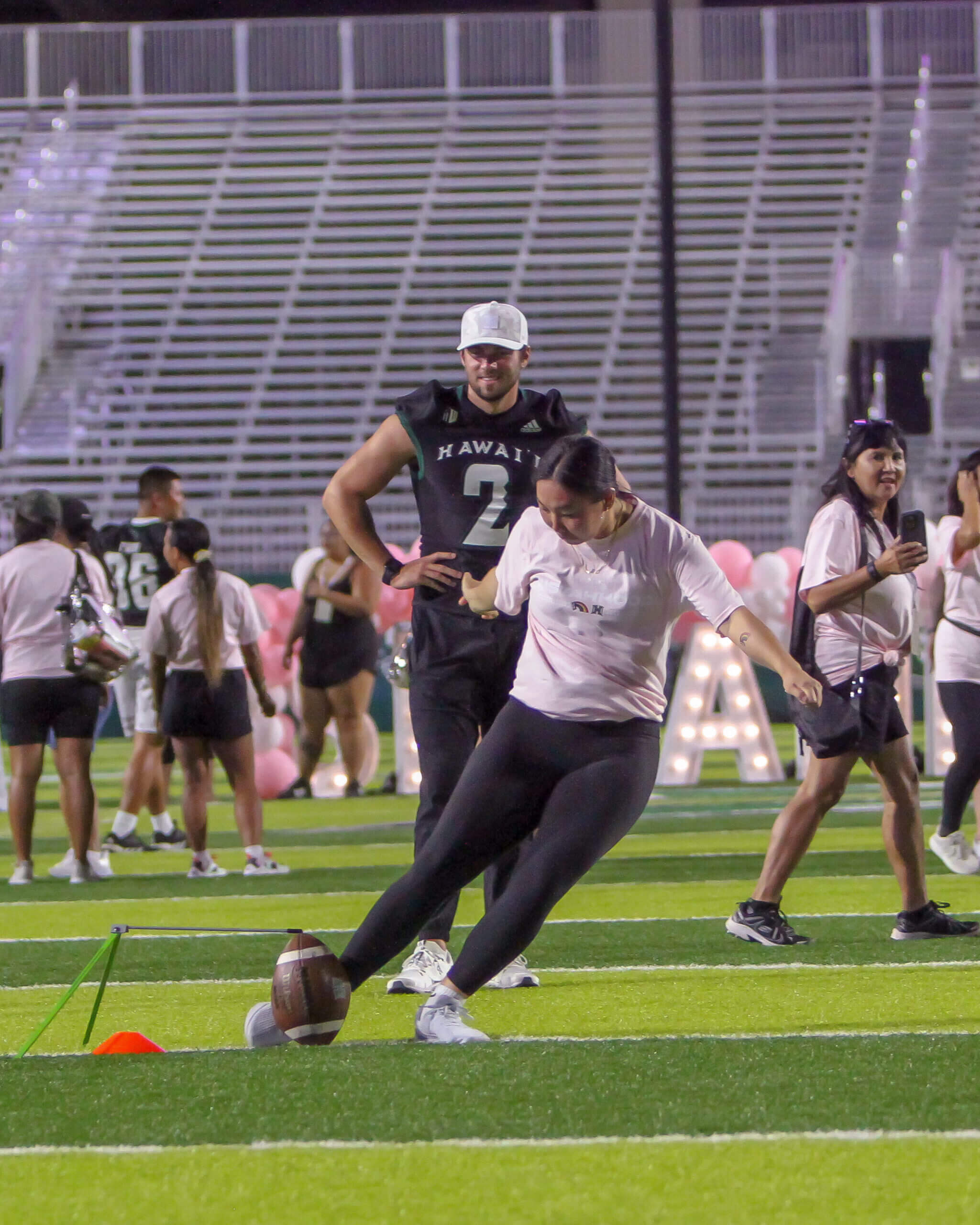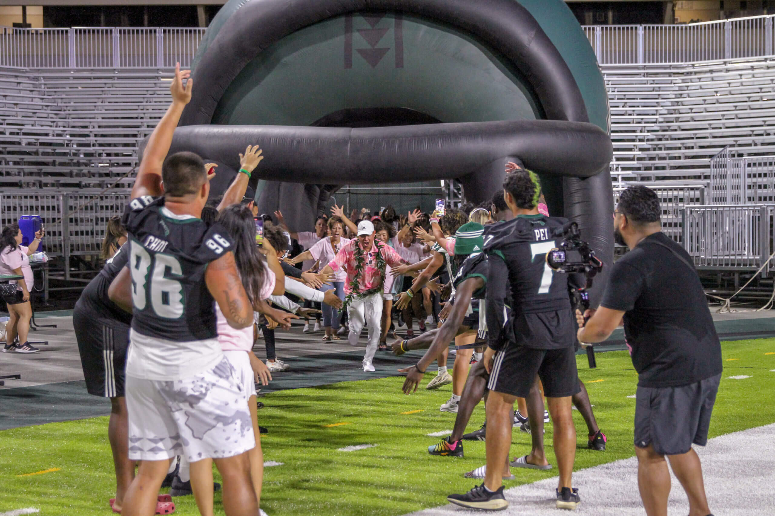 The Sistahhood Social 2 was held on August 19th at the UH athletic department and TC Ching Field. Participants were treated to chalk talks by the coaches, tours of the new weight room and renovated lockerroom, food and beverages and live drills conducted by the coaches and players. There were also a live and online auctions. The event raised nearly $100,000 for the Warrior football program.